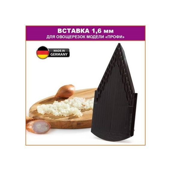 Вставка с двойными рядами мелких ножей. На этой вставке мы получим нарезку тонкой соломкой — подобно "корейской морковке". Взаимозаменяема с тёркой "Роко".