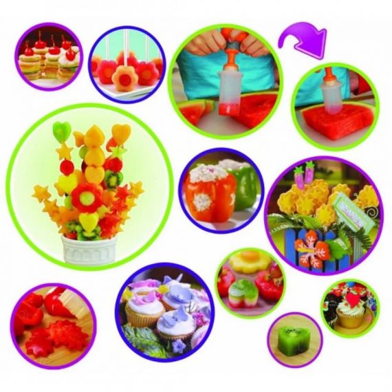 Если вы когда-то хотели создать красивые закуски или даже целое блюдо из нарезанных разной формой фруктов и овощей, Pop Chef это набор для вас. С его помощью вы сможете приготовить множество настоящих произведений кулинарного искусства от фруктовых цветов до симпатичных маленьких сэндвичей. И все это очень просто, быстро и без применения ножей.