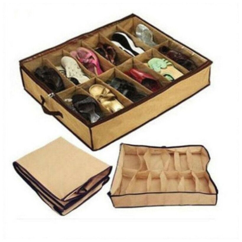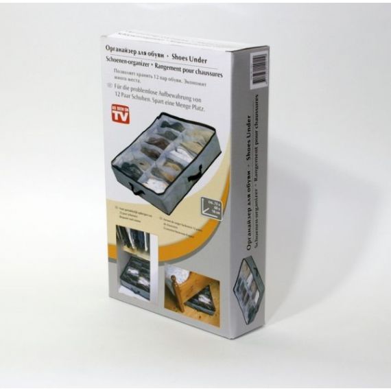 Достоинства: дышащая ткань, видно обувь, не пылится. Органайзер для обуви до 12 пар. Идеальное приспособление для организации пространства. Подходит не только для хранения обуви, например, можно сложить детские игрушки, сложить шапки, перчатки, носки и другие мелкие аксессуары. Несколько причин для приобретения Shoes Under – органайзера для обуви: Это устройство с крышкой на молнии похоже на прозрачные коробки для хранения обуви, произведенные из высококачественного материала, который позволяет обуви дышать, защитит ее от избыточной влажности и пыли. С чехлом для хранения обуви вы всегда без труда отыщете нужную пару! Безусловно, обувь, хранящаяся в надлежащих условиях как эта модуль-сумка, сохранит свой идеальный внешний вид и прослужит гораздо дольше! Размер органайзера: 75 х 59 x 15 см. Размер ячейки: 30х14 см, высота 15 см. Обувь 45-го размера помещается. Материал: полиэтилен и полимерное волокно (нейлон) воздухопроницаемое.