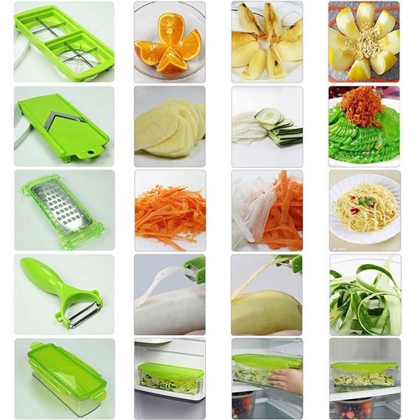 Овощерезка Nicer Dicer Plus – это универсальное приспособление с функциями шинковки, терки и ломтерезки. Благодаря специально разработанной конструкции и острым ножам из нержавеющей стали процесс нарезки теперь не требует больших усилий. Все кусочки получаются одинаковыми и аккуратными, и даже очень мягкие фрукты и овощи не сминаются при нарезании.