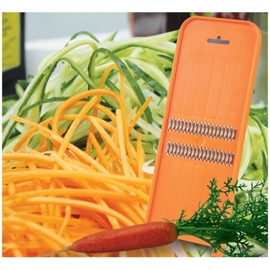 Нарезку, которую мы традиционно называем "корейская морковь", квропейцы называют "жюльен". Это особый способ нарезки тонкой соломкой, который дает наиболее нежную консистенцию или ускоряет готовность блюда. Виды нарезки на овощерезке "Роко": Тонкая длинная соломка толщиной 1,6 мм - классическая "корейская морковь" Тонкая короткая соломка - приготовление салатов из редиса, огурца, моркови, яблока, перца, подготовка овощей для пережарки Мелкая крошка - шинковка лука или капусты для пирожков, котлет, зраз, рулетов Мелкая стружка - натирание сыра для пасты или шоколада для тортов Полное описание: КОРЕЙCКАЯ МОРКОВЬ Называть это блюдо «корейским салатом» на самом деле не правильно.