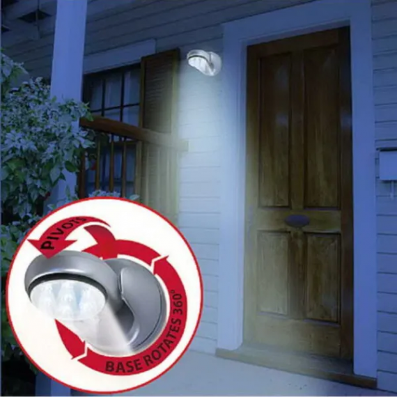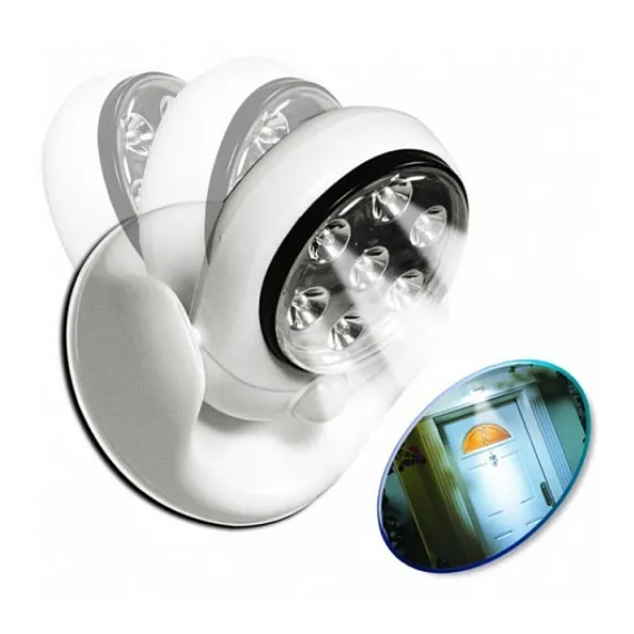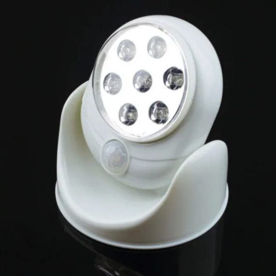 Светодиодный светильник оснащён датчиком движения, реагирующим на движения с расстояния до 3 метров, и сенсорным датчиком, который автоматически включает и отключает лампы. Преимущества: Влагостойкий корпус позволяет установку на улице; Работает от батареек; Радиус освещения 4.5 м.; Датчик движения распознает шаги с расстояния до 3 м.; Встроенная функция автовключения /отключения ламп; Может служить как дополнительная система безопасности; Легко установить в любом месте; Характеристики: Тип: светодиодный Led светильник Количество светодиодов: 7Сенсорный датчик движения: есть Радиус захвата движения: 3 м Угол поворота: 360 гр. Срок работы светодиодов: 10 000 часов/ Конструкция: съемная Материал: пластик Питание 4 батарейки АА (в комплект не входят)Кнопка вкл./выкл: есть Размеры: 12 см х 13 см х 16 см/ Вес: 160 г Цвет: белый